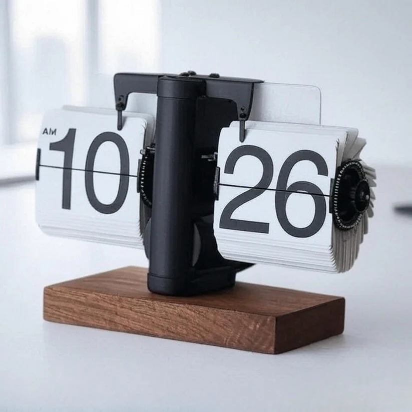 Reloj Flip de Nogal Retro Premium: La Elegancia Atemporal para Tu Escritorio