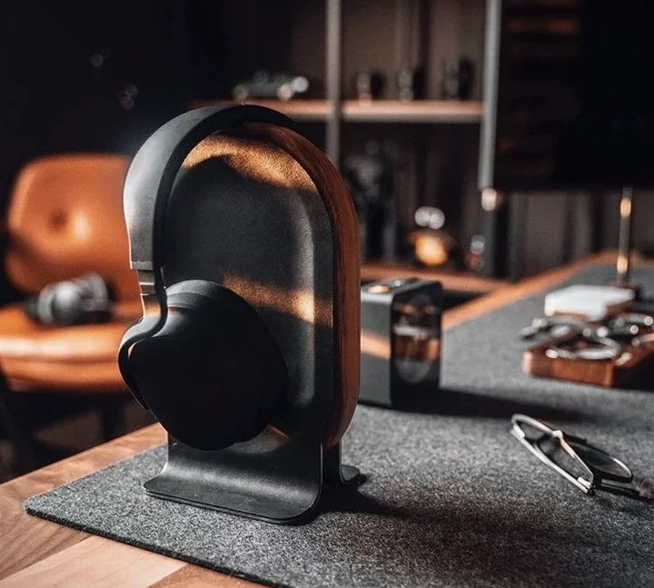 TuneBase: Soporte Premium de Madera y Cuero para Auriculares | Estilo y Protección