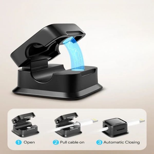 El sistema magnético te permite sujetar y liberar cables con una sola mano. Rápido, limpio, eficiente.
