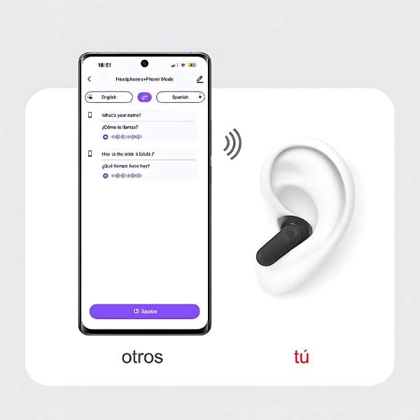 A través de una app especial que se conecta al auricular. Puedes activar la función y traducir en tiempo real.