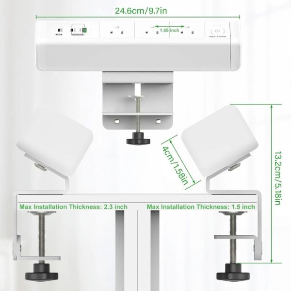 Revoluciona tu estación de trabajo con el PowerClamp™ USB-C PD 65W, una innovadora toma de corriente incorporada diseñada para la máxima eficiencia y conveniencia en tu hogar, oficina u hotel. Este elegante y potente dispositivo te permite mantener todos tus aparatos electrónicos cargados y listos, sin cables desordenados ni la necesidad de buscar tomas.