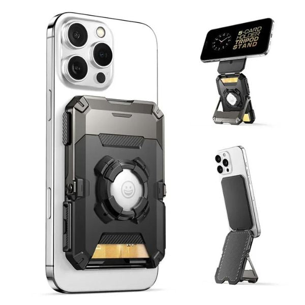 SUPCASE MagWallet Pro: Cartera Magnética con Soporte AirTag y Trípode | 5 Tarjetas y Protección RFID