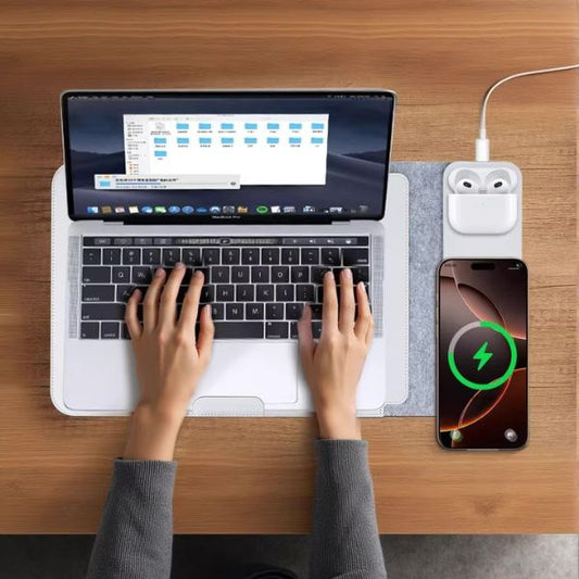PowerPad Pro 3-en-1: Funda para Portátil y Cargador Inalámbrico Magnético | Oficina Portátil Completa